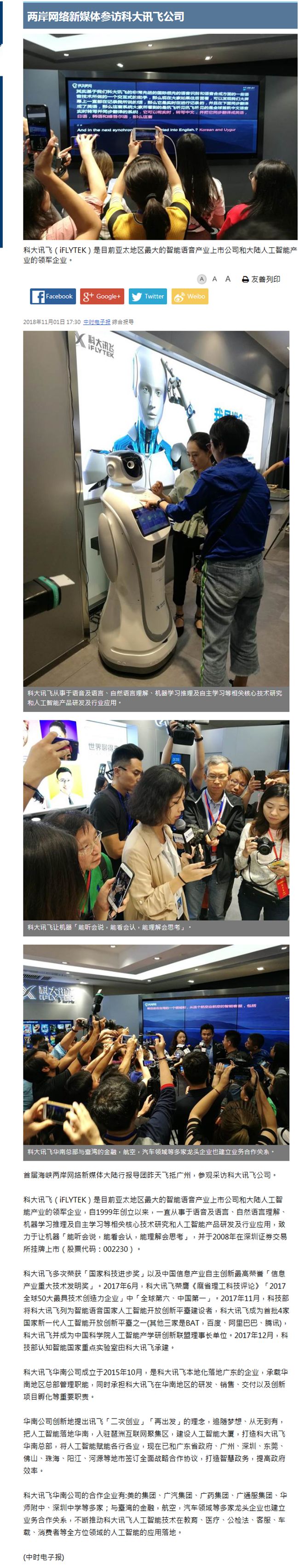 【中時電子報】兩岸網絡新媒體參訪科大訊飛公司