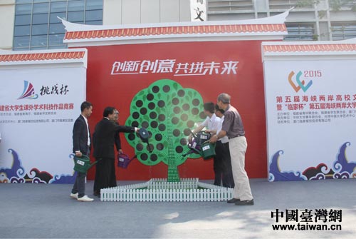中國臺灣網5月29日廈門訊 (記者 吳曉寒)29日上午,第五屆海峽兩岸高校文化與創意論壇暨“臨家杯”第五屆海峽兩岸大學生文化與創意設計作品大賽在華僑大學廈門校區開幕。共青團福建省委副書記陳濤、華僑大學副校長劉斌、集美區副區長莊志輝、中原大學設計學院院長黃承令等嘉賓出席開幕式並共同啟動海峽創意論壇係列活動。