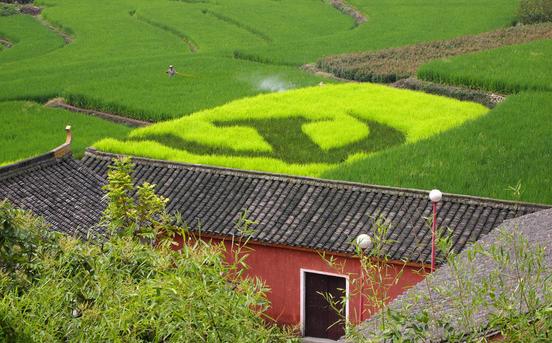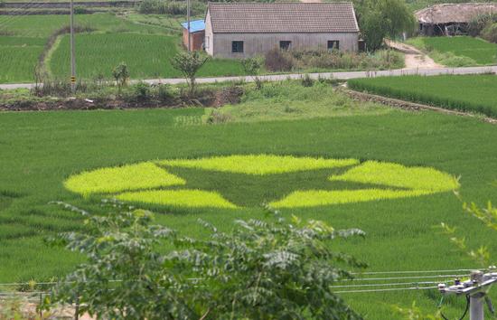 8月27日,革命老區浙江寧波余姚市梁弄鎮賀溪村,在種糧大戶汪銀燦的農田里,一簇簇黃綠色、深綠色的水稻秧苗組成黨徽、團徽等一幅幅圖案,別有情趣。據汪銀燦介紹,到明年春天,他將嘗試種上各色油菜進行以“紅色文化”為主題田間“藝術創作”。