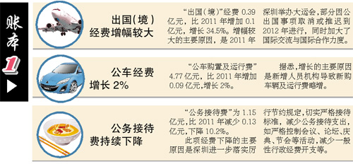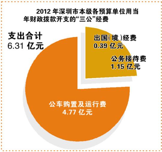 昨天,市五屆人大常委會第二十四次會議開始審議去年本級決算、深圳市2013年1~6月國民經濟和社會發展計劃執行情況,以及預算執行三大政府“賬本”,以及今年政府投資項目計劃調整方案。記者現場獲悉,去年市本級“三公”經費“賬單”為 6.31億元,現“兩升一降”狀況——公務接待費同比下降約一成,出國(境)經費大幅增長,公務車購置及運行費同比增長2%,導致“三公”經費整體略有增長。
