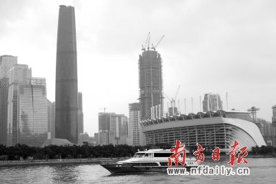 廣州城市新中軸線自北向南,依次穿過天河商圈的中信廣場、珠江新城CBD東塔、西塔與花城廣場,連接到珠江南岸小蠻腰等地標,印證著這個中心城區的重要地位。符超軍 攝