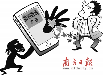 南方日報訊 (記者/陳捷生 通訊員/程琛 張毅濤)購買機票的朋友注意啦,近期廣州市出現以航班取消讓事主改簽機票為由的詐騙警情且有上升的勢頭,嫌疑人發短信給購買機票的事主,稱其所乘航班取消,由于近期頻現降雪、霧霾等惡劣天氣,事主極易信以為真,撥打詐騙短信中的“客服電話”,嫌疑人以改簽要手續費為由,騙取事主高額轉賬。此手法欺騙性強、迷惑性大,為此,廣州警方提醒,改簽機票要小心詐騙圈套。