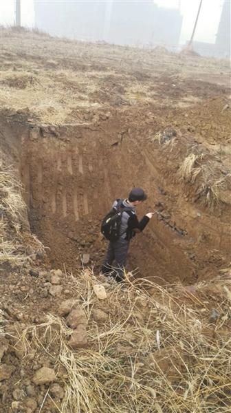 方青松告訴記者,這些洞都是盜墓賊幹的。據統計,在南站這一片大概有好幾百個這種盜洞。從現場的外觀上看,有些就是最近新打出來的。這些洞看上去雖然很粗陋,但可以看出,這些盜墓賊對歷史、地理的知識掌握得很透徹,甚至連風水都很精通。方青松介紹說,這些盜墓賊會根據地形地貌、風水來判斷古墓價值。有更專業的盜墓賊,會根據聞泥土味道來判斷古墓的價值。