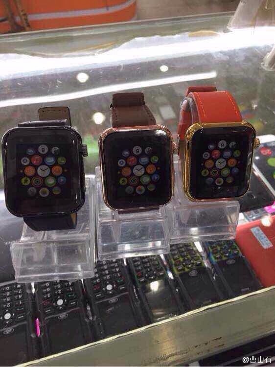 報道說,根據內地網民10晚上上載消息披露,深圳已經有山寨版蘋果手表出售,並上載一張有3塊山寨蘋果智能手表的照片,表帶有棕色和橙色等,以"見識深圳速度,iwatch深圳上市"為題,引人注目,並隨即被瘋傳。