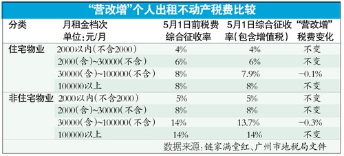 雖然42元不算很多,但一年下來也有504元,把差不多兩個月的房租漲幅抵消了。直至4月底,她從稅局了解到,增值稅也一並按照綜合稅率來徵收,對于她繳納出租房產稅的2000~30000元一檔,出租房產稅依然維持在6%,與之前的綜合徵收稅率一樣,李女士的心頭大石終于放下來。