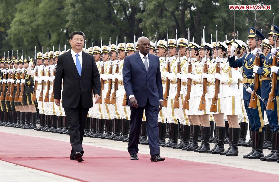 Chinese President Xi Jinping(L, front) holds a welcoming ceremony for Angolan President Jose Eduardo dos Santos before their talks in Beijing, capital of China, June 9, 2015. (Xinhua/Zhang Duo)