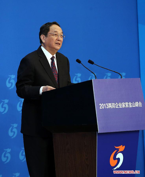 Yu, member of the Standing Committee of the Political Bureau of the the Communist Party of China (CPC) Central Committee, made the remarks at the opening ceremony of the 2013 Zijinshan Summit for Entrepreneurs across the Taiwan Strait in Nanjing, capital of east China's Jiangsu province.
