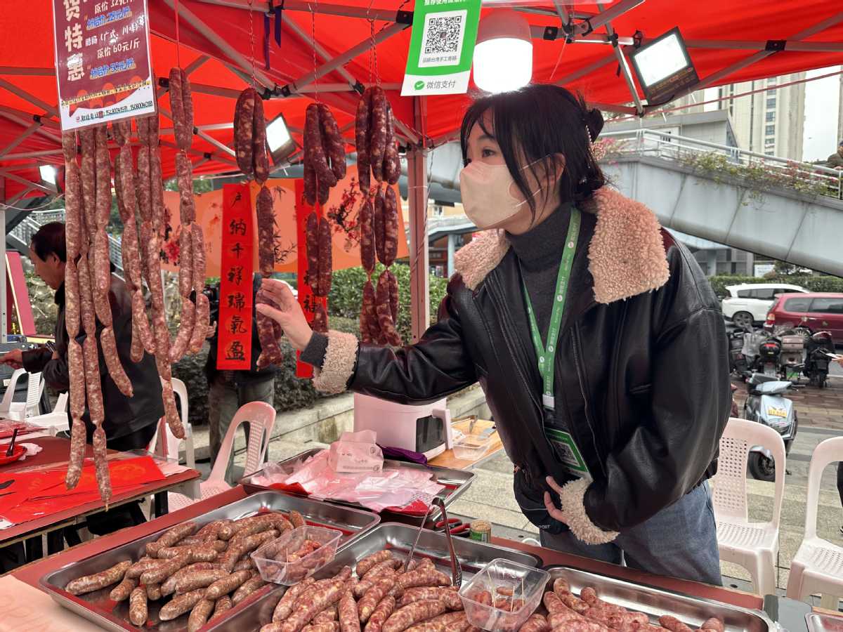 The sizzle of Taiwan sausages and the nostalgic aroma of Fuzhou fish balls filled the air in Guixi Community over the weekend as a vibrant cross-Strait Chinese New Year bazaar was held in Fuzhou, the capital of East China's Fujian province.