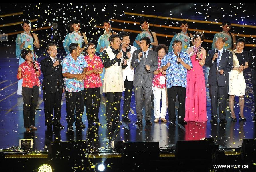 Photo taken on Aug. 24, 2013 shows a singing program performed during the 2013 Hakka folk song TV show in Hsin-chu, southeast China's Taiwan. The TV show, which has been held since four years ago, becomes a Hakka culture exchange bridge across the Taiwan Strait. (Xinhua/Lu Peng)