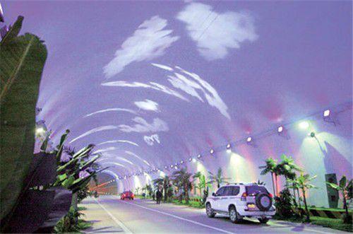 3. Zhongnan Mountain Tunnel RoadThe Zhongnanshan (Zhongnan Mountain) tunnel, which passes through the Qinlingmountains in northwest China's Shaanxi province, was opened on Jan. 20, 2007. Thetunnel is equipped with lights in different colors and patterns. Each tunnel is decoratedwith artificial plants as well as images of clouds projected over the ceiling at certain sectionsin order to reduce the eye strain of drivers