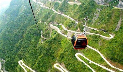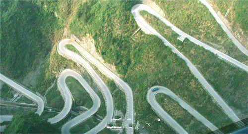 6. Tongtian HighwayTongtian Highway, located at the Tianmen Mountain National Forest Park in centralChina's Hunan province, is a winding mountain road to the famous Tianmen Cave on themountain peak. Measuring more than 10 kilometers in length and 200 meters to 1,200 meters above sea level, the road has 99 sharp turns. It took eight years and about 100 million yuan (US$16.2 million) to construct the road. The Tongtian Highway is known asChina's "most spectacular road" for its 99 bends and beautiful scenery along the way