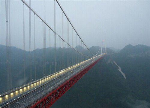 5. Aizhai Suspension BridgeAizhai Suspension Bridge is the world's highest and longest tunnel-to-tunnel suspensionbridge above Dehang Canyon. It is part of National Highway 65 (G65), above AizhaiWinding Road. The bridge is more than 300 meters above the ground. It shortens thejourney between Chongqing and Changsha from several days to just 8 hours