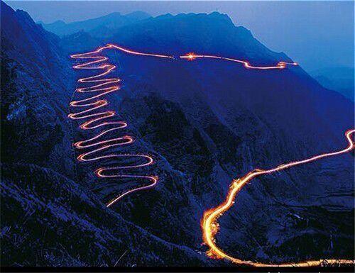 7. The 24 ZigzagsLocated 6 kilometers southwest of Qinglong Town, Qianxi'nan Buyi and Miao AutonomousPrefecture, northwest China's Guizhou Province, the 24 Zigzags was built during WWII totransport supplies to help resist the Japanese invasion. The 4-kilometer-long road has 24 turns, and covers only 350 meters
