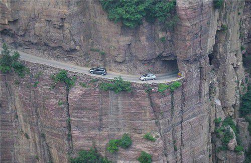 2. Guoliang Tunnel RoadThe Guoliang Tunnel Road was built in the Taihang Mountains of central China's Henanprovince. It took five years to complete, and a few villagers died in accidents during theconstruction. The road is about 1.3 kilometers (0.81 miles) long, 4 meters wide and 5 meters high, which makes the road extremely scary. The tunnel has 30 windows that allowdrivers to enjoy the spectacular view of the Taihang Mountain. The mountain is known as "the long corridor in cliffs." The road is regarded as one of the ten most dangerous roads inthe world