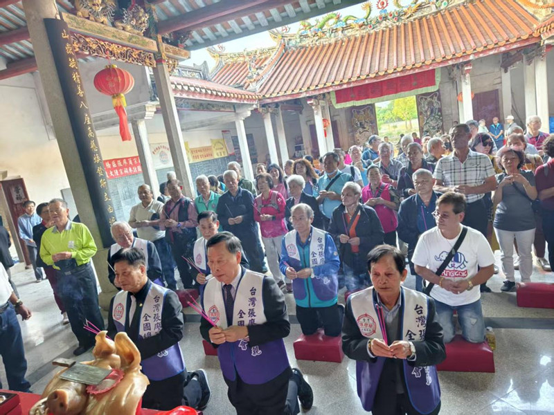 在張氏大宗祠,當地宗親代表詳細介紹了宗祠的歷史沿革和家族遷徙繁衍歷程,參訪團成員認真傾聽、不時詢問,對宗祠所承載的共同文化記憶表示讚嘆。隨後,兩岸宗親手持香燭,虔誠地向先祖牌位行禮,表達對先人的緬懷與敬仰。