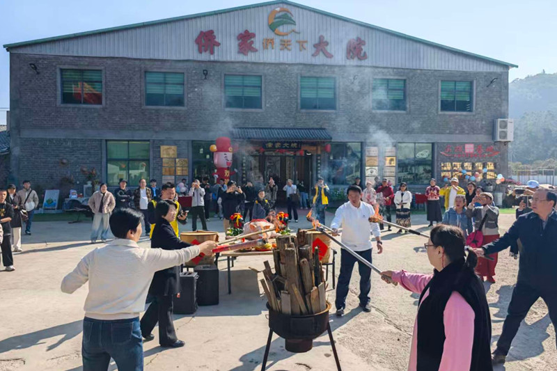 活動現場,年味十足。臺胞們穿行田園,親手採摘生態蔬果,喂食鴕鳥、追捉土雞,體驗農事樂趣,感受鄉村產業發展的蓬勃生機。大家歡聚一堂,品味炸油餅、溜鍋邊,共享全豬宴,躍動的火焰映照團圓願景,舌尖上的共鳴詮釋“食同味”的鄉愁,讓跨越海峽的濃濃年味喚醒共同的文化記憶。