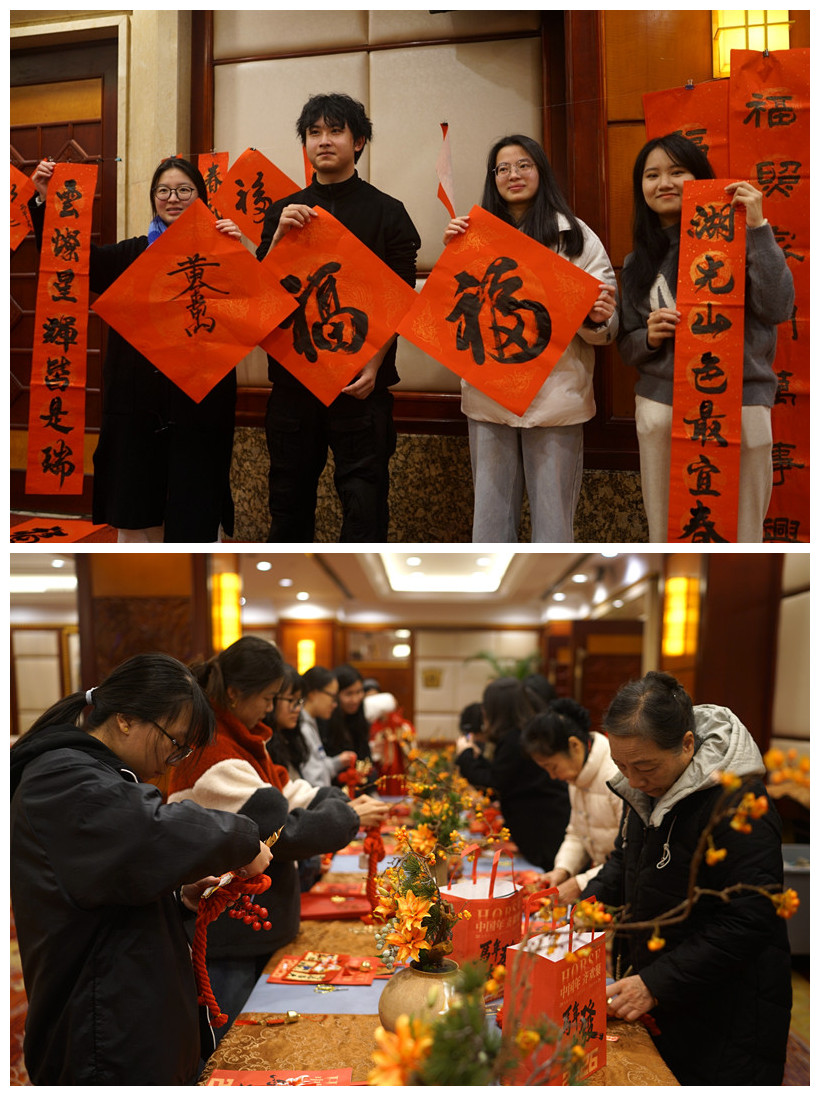 互動環節也十分“吸睛”。書法桌前,臺胞們躍躍欲試,揮毫潑墨,一個個福字躍然紙上,一幅幅春聯靜靜鋪展,傳遞著新春佳節的喜慶。中國結制作更是吸引了眾多臺胞。只見臺胞們圍繞在老師身邊,時而低頭琢磨繩結的走向,時而與身邊夥伴輕聲探討,用一個個精致的中國結串聯起現場的歡聲笑語,串聯起兩岸的血脈情緣。