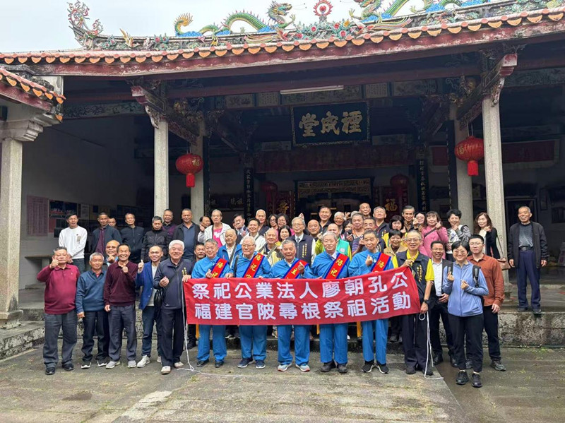 上午9時許,張廖宗親一行首先來到位于光亮小學內的禋成堂。禋成堂是當地張廖家族的重要宗祠,堂內供奉著列祖列宗牌位,香火綿延數百年。在莊嚴肅穆的氛圍中,臺灣宗親與詔安官陂張廖氏宗親一道,共同追憶先祖廖朝孔公渡海赴臺、開基拓業的艱辛歷程,並向先祖上香、鞠躬祭拜。