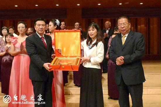 福建省直黨工委常務副書記朱清上臺祝賀演出成功並與兩岸合唱團合影 鄭嵐/攝影