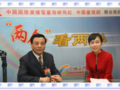 臺胞之家網訊:今年全國“兩會”期間,共有6位臺籍人大代表和5位政協委員作客由中國國際廣播電臺“海峽飛虹” 網絡電臺和中國臺灣網聯合推出《 2009 年“兩會”看兩岸》網絡視頻訪談節目,臺胞之家網已將這11位臺籍人大代表和政協委員的訪談視頻收錄在本網中的“視頻專區”,歡迎各位鄉親和網友點擊收看。