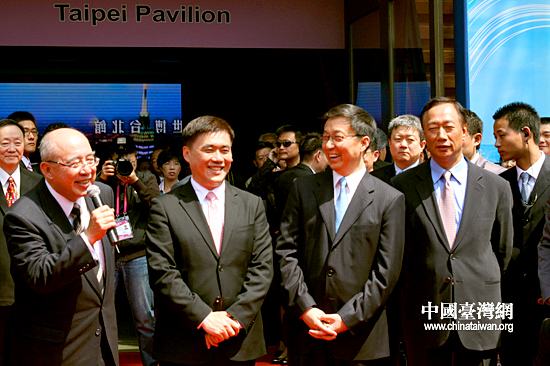 中國臺灣網5月1日上海消息 上海世博會臺北案例館今天下午舉行開館儀式,除臺北市市長郝龍斌外,中國國民黨榮譽主席吳伯雄、上海市市長韓正、臺灣鴻海集團董事長郭臺銘等嘉賓名流悉數到場慶賀。臺北案例館成為臺灣“三館齊下”中最先亮相的展館,正式向世界各國遊人微笑“say hello”。(記者 李徽)