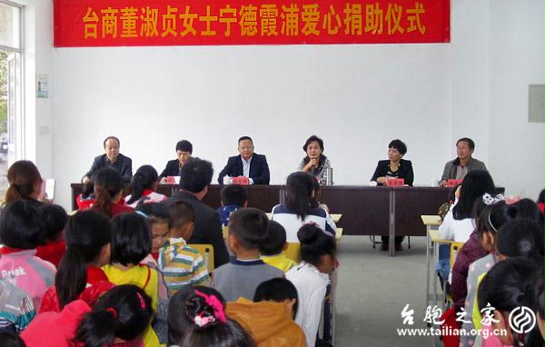 11月18日,英籍臺商董淑貞女士,在福建省臺聯副會長梁志強陪同下,從武夷山驅車300多公里來到寧德市霞浦縣崇儒畬族鄉的中心小學開展捐資助學活動。