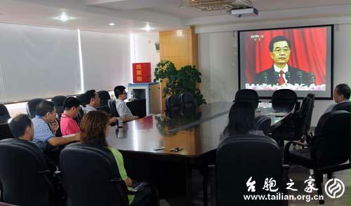 臺胞之家網訊:今天上午10點,慶祝中國共產黨成立90周年大會在人民大會堂隆重召開。福建省臺聯及時布置收聽收看慶祝大會轉播實況,省臺聯副會長葉露昆、柯連妹與機關全體工作人員懷著激動和崇敬的心情,準時在會議室等候並收看轉播,聆聽中共中央總書記胡錦濤在大會上的重要講話。