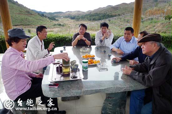 省臺聯一行與“摩天嶺農業有限公司”董事長傅金池先生泡茶品甜柿 鄭嵐/攝影