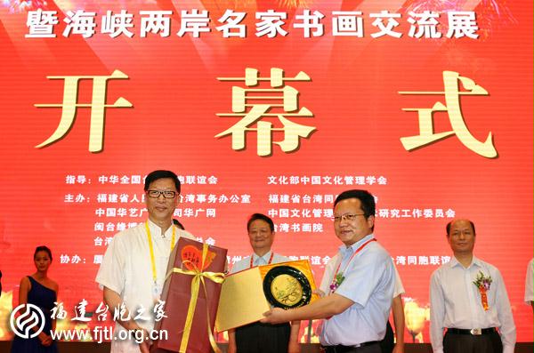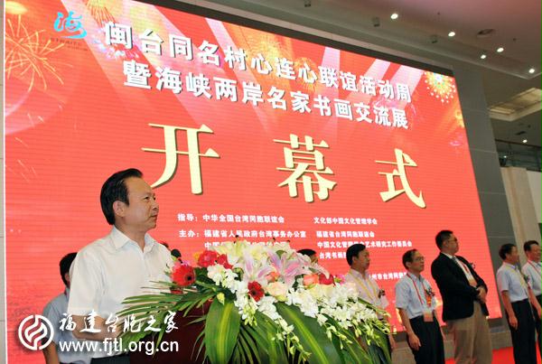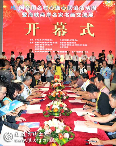 參加今天開幕式的有全國人大常委、全國臺聯會長汪毅夫、省人大常委會副主任張建。省臺聯黨組書記、省臺辦副主任蔡爾申主持開幕式。全國臺聯會長汪毅夫宣布同名村·心連心聯誼活動暨海峽兩岸名家書畫交流展開幕。臺灣南投草屯鎮前鎮長賴忠政主持同名村對接簽約儀式。(鄭嵐)