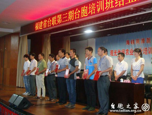臺胞之家網福建臺聯訊:9月28日上午,海峽兩岸觀光休閒農業創業暨省臺聯第三期臺胞培訓班圓滿結束,並在漳州科技學院成教中心舉行結業式。福建省臺聯梁志強副會長,漳州市政府黃浦江副市長,市政府于曉岩副秘書長,市農辦郭福泉主任、林德泓副主任,漳浦縣政府陳林副縣長,漳州市中華職教社朱順忠副社長,漳州科技學院吳長彬院長等領導與培訓班學員們一起參加了結業式。