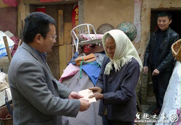 老臺胞葉亞新年近九旬,自己一個人獨居在祖厝里,而身患眼疾和痛風等病,一子生活條件不大好,無法照顧她,生活貧困,當梁志強把慰問金放在她手上時,老人淚流滿面,連聲感謝。