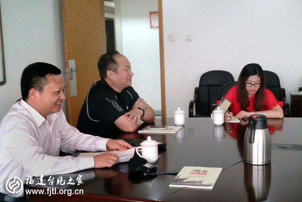 福建省臺聯副會長梁志強(左1)向媒體朋友介紹活動籌備情況 鐘曉惠/攝影