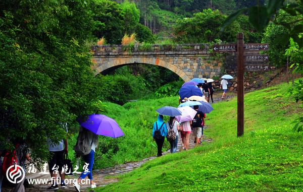同學們頂著蒙蒙細雨,漫步在青山綠水環繞的山村,老樟樹、石砌牆、村口老者與相識的鄉音是那麼的眼熟和親切,倣佛在講述一段動人的故事。臺灣逢甲大學帶隊老師張昭友說,與村里的老人聊天,就像回到童年的家鄉那樣溫馨。(鄭嵐)