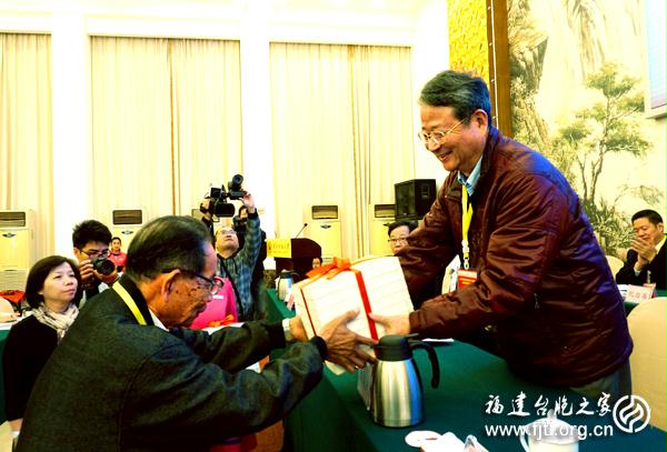 全國臺聯會長汪毅夫出席開幕式,並為邵魁式先生和臺灣戲曲學院頒授贈書。徐波/攝影