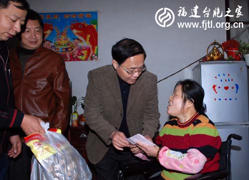 冒著淋漓小雨,省市臺聯一行走訪了在長樂市下崗臺胞陳玉妹、癱瘓困難臺胞陳秋美、孤寡老臺胞肖輝、貧困多病老臺胞陳水梅和夫妻雙下崗,女兒患白血病黃建國。在長樂,市委統戰部許副部長陪同慰問。