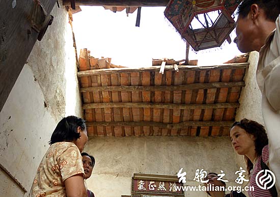 9月8日,省臺聯柯連妹副會長一行來到東山縣,看望了受災臺胞林瑞葉老人。林老大娘是漳州市的困難臺胞,所居住的房屋因年久失修,在此次臺風中房頂坍塌,目前借居它處。柯連妹副會長詳細了解受災情況,並囑咐漳州市臺聯葉香雪副會長盡快將林老大娘的受災情況形成報告上報省臺聯,以便上級臺聯盡快研究幫扶方案。