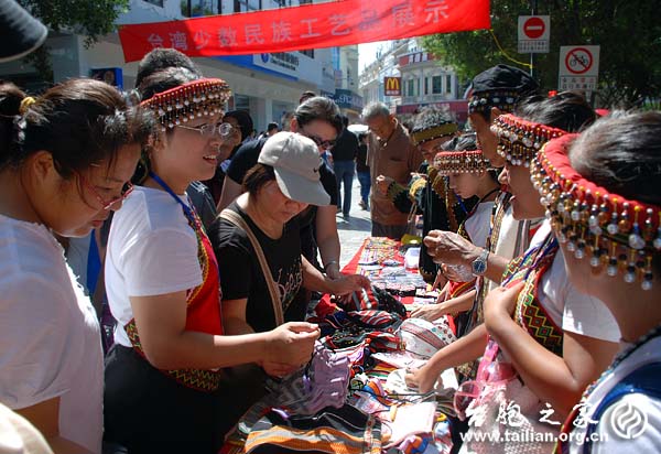 來自寶島臺灣的少數民族工藝品吸引眾多遊客的目光(攝影:鄭嵐)