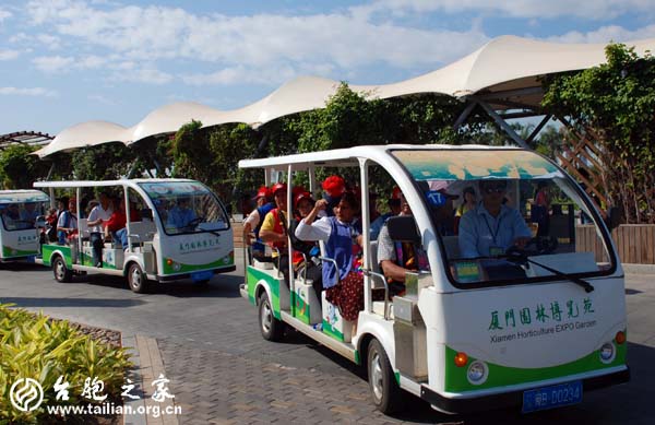 臺胞之家網24日訊:(圖/文 古路)今天上午,參加海岸兩岸少數民族豐收節的臺胞們來到廈門園林博覽苑參觀。臺胞們時而乘電瓶遊覽車,時而漫步庭院樓閣,穿梭在閩臺、江南、嶺南、北方等不同風格的詩情畫意的景色中,歌隨車飄,人在畫中。,美麗的景色令臺胞們流連忘返。