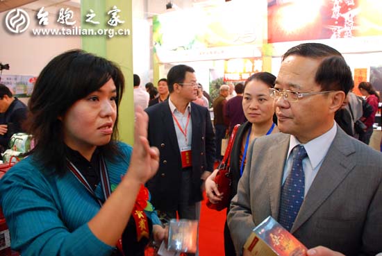 福建省臺聯副會長柯連妹(左1)葉勁光(右1)參觀臺商展區(攝影:陽夏)