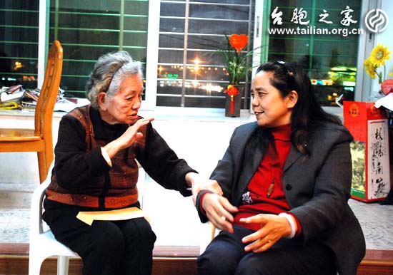 1月31日晚,省臺聯柯連妹副會長一行首先在泉州看望了86歲的老臺胞潘汝萍。潘汝萍老人26歲時(1949年)隨家人到大陸探親,卻因戰事與高雄的老家一別至今。身體還硬朗的潘汝萍老人緊緊拉著柯副會長的手,充滿深情地說:“現在大家生活好了,我最大的願望就是能再看看臺灣家鄉的一草一木,看看高雄的老街舊景,會會兒時的朋友”。柯副會長囑咐老人一定要養好身體,爭取回高雄看看。柯副會長與潘汝萍老人用家鄉話聊家常,話兩岸情深,情意濃濃,逗得老人樂開懷。