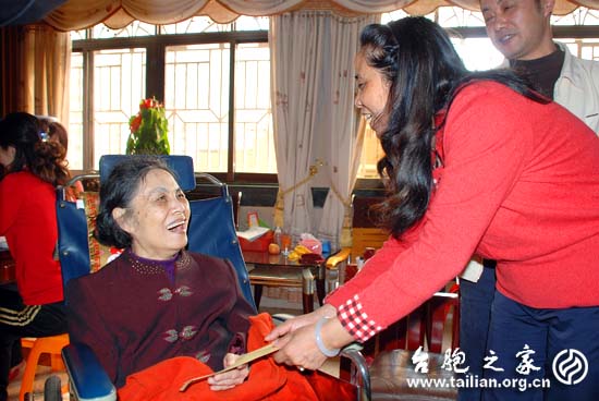 在石獅市,省臺聯領導一行還看望了82歲高齡的臺胞葉素桂老人,葉老太患病後,十多年來癱瘓在家,多年來得以各級臺聯和當地臺辦領導的關心和家人長期的悉心照料,老人頑強與病患作鬥爭,屢次戰勝病魔,其樂觀精神和堅強意志令人欽佩。柯副會長與老人親切交談並送上慰問金,激勵老人勇敢生活並送上深深的新春祝福。
