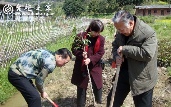 省臺聯秘書長、支部書記張岩(左)帶領大夥植樹忙(蔡碧英 攝影)