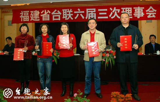 會議還表彰了2009年度全省臺聯信息、通訊工作先進單位和個人。省臺聯副會長柯連妹宣讀表彰決定。廈門、泉州、漳州市臺聯分獲先進單位一、二、三等獎,福州、三明市臺聯獲先進單位優秀獎,12位同志榮獲先進、優秀及特別獎。省委統戰部李韌副部長等領導為先進單位和個人頒獎。(福建省臺聯 陽夏)