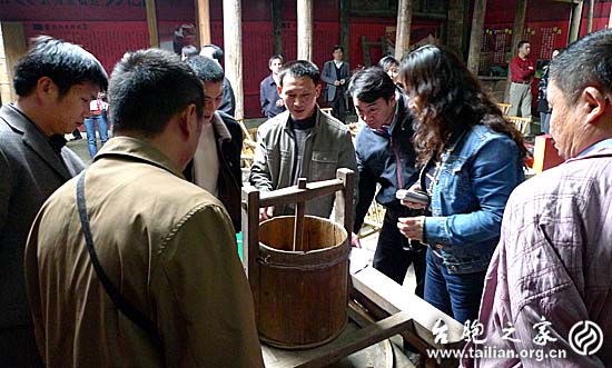 學員們被對傳統制制茶工藝所吸引(攝影/)鄭嵐 湖南省臺聯辦公室主任孫衛民參觀完三坊七巷後說,三坊七巷是名符其實的中國歷史文化名街,是中國歷史文化的一塊靚麗瑰寶,要好好開發保護,它對促進閩臺文化的交流將起到很好的推動作用。