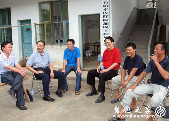 泰寧縣朱口鎮赤坑村,是三明市委統戰部和市臺聯的挂點村。葉副會長來到赤坑村,即冒著烈日,在村部大院與村兩委幹部和三明市臺聯挂村幹部座談。村書記和村主任都是地道的農民,看到從省城下來的官兒,都有些措手不及,只是憨厚地笑著,一時不知說什麼好。葉副會長見狀,親熱地拉他們一起坐下,家長里短地與他們拉家常,並合影留念。