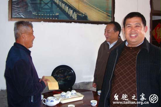 12月27日,省臺聯副會長葉露昆率省臺聯工作人員驅車前往莆田市慰問。在荔城區西天尾鎮龍山村臺胞陳慶琳簡陋的家中,葉副會長與陳慶琳促膝交談。陳慶琳早年曾擔任龍山村黨支書,後因腦部手術,一直在家休養,生活比較拮據。葉副會長關心地詢問陳慶琳的身體生活情況以及子女的工作情況,代表省臺聯給他送上了慰問金,囑咐他安心養病。他說,臺胞有困難可以及時與省市臺聯聯係,臺聯就是我們廣大臺胞的家。接著,葉副會長一行又風塵仆仆地來到老臺胞程冀達的家中慰問。程冀達已75歲高齡,且患腦溢血長年臥病在床,生活無法自理。葉副會長詳細地詢問了程冀達的病情,並囑托其家人一定要照顧護理好程冀達,使他能老有所養、頤養天年。葉副會長一行還看望慰問了省臺聯名譽理事、莆田億漢土地開發公司董事長、臺商李嘉生先生,並與之進行了親切的座談,勉勵他增強在大陸投資興業的信心,做閩臺交流合作的友好使者。臨別之際,葉副會長風趣地指了指送給李先生的一簇花藍,希望李嘉生在大陸興辦的企業象鮮艷奪目的紅掌一樣,越來越紅火。(福建省臺聯 周雄銘)