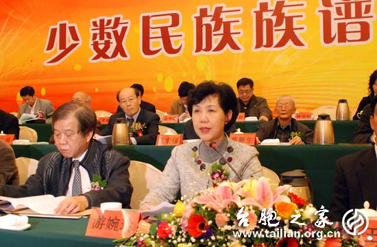漳州市委常委、統戰部長遊婉玲代表漳州市委、市政府對蒞臨大會的海峽兩岸少數民族嘉賓和專家學者和社會各界人士表示衷心的感謝和熱烈歡迎,對兩岸族譜對接懇親會的舉辦表示熱烈祝賀。她指出,漳州是一個少數民族散雜居地區,是廣大臺胞的主要祖籍地,也是南方畬族和福建畬族重要祖籍地、臺灣畬族的重要發源地。歷史上,漳州少數民族為推動漳臺歷史文明的發展作出了積極的貢獻。近年來,漳州市委、市政府及相關部門認真貫徹落實黨的十七大、十七屆四中全會和胡錦濤總書記在紀念《告臺灣同胞書》發表30周年大會上講話,以及《國務院關于支持福建省加快建設海峽西岸經濟區的若幹意見》精神,高度重視兩岸少數民族的交流,把兩岸少數民族工作和族譜對接擺上重要議事日程。她希望兩岸同胞共同努力,多交流,走動,進一步構建兩岸少數民族交流合作平臺,為促進海峽兩岸少數民族的團結、交流、合作,實現中華民族的偉大復興而共同努力。