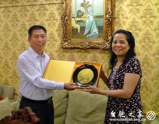 福建省臺聯柯連妹副會長向黃春林理事長贈送紀念品 攝影/鄭嵐