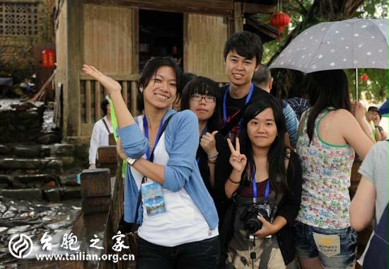 臺胞之家網訊:17日,參加由福建省人大臺工委、省臺辦、省政協港澳僑臺和外事委員會、省海外聯誼會、省民革、省致公黨、省臺盟、省臺聯八家單位聯合舉辦的海峽西岸2011年臺胞青年夏令營暨全國臺聯臺胞青年千人夏令營福建分營的臺灣學子,冒著飄忽不定的陣雨,參觀了這-被稱為世界上獨一無二、神話般的山區建築的“世界文化遺產”-福建土樓的南靖土樓,領略了土樓文化奇觀。