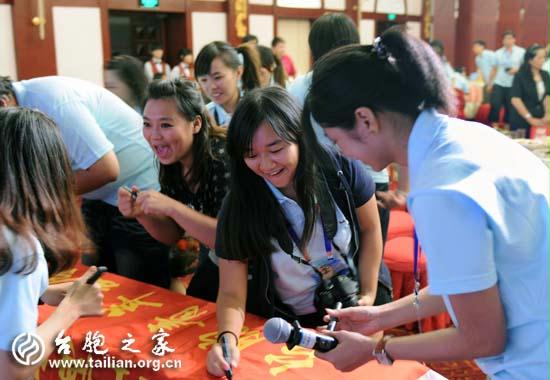 臺灣同學爭先在營旗上簽名留念 攝影/鄭嵐